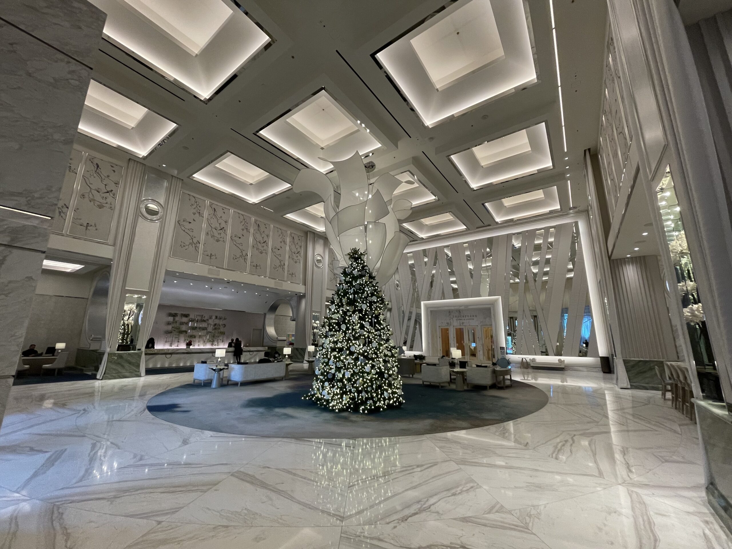 大叔把我们送到了入口,入口确实非常气派,有种中国飞檐走壁的感觉。路过Conrad check-in,长长的队伍,大概有30多号人等着check-in (貌似大部分都是亚洲脸)。相比而言Crockford的check-in,则需要穿过一个走廊,肉眼可见比Conrad更大,而且没有一个人check-in,这时间省了不少。